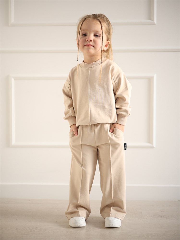 Костюмы сшиты из футера 2х нитка. Лицевая сторона – гладкая и ровная, а изнаночная имеет петельчатую или ворсовую структуру. Носить костюмы будет комфортно теплой весной или прохладным летом, с верхней одеждой или самостоятельным слоем.