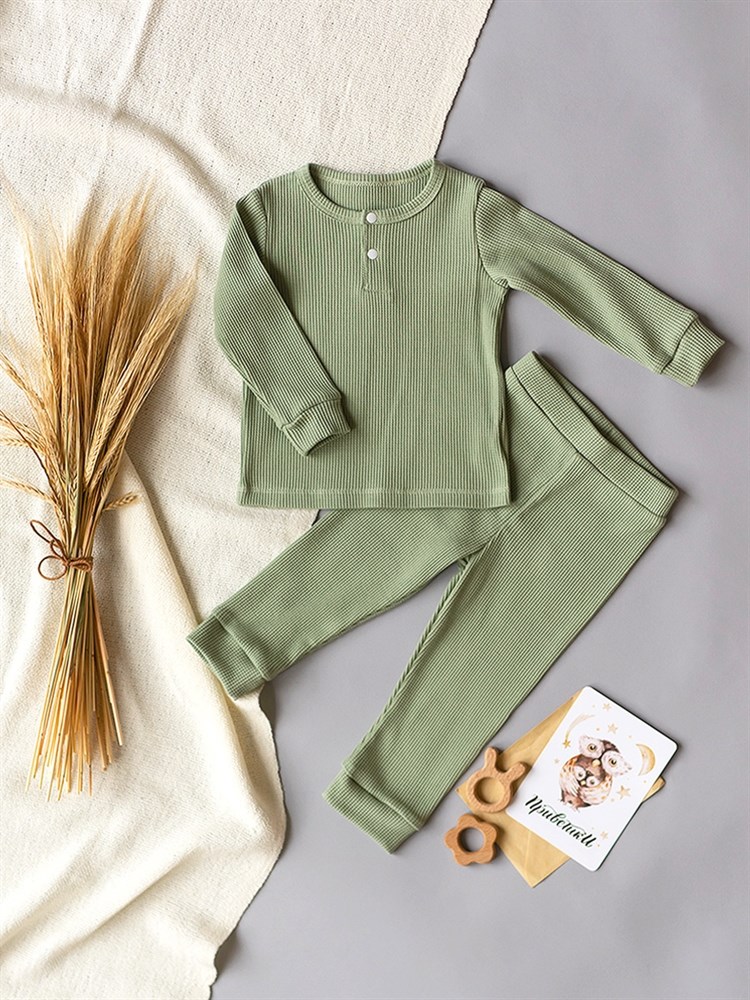 Вафельные детские пижамы в четырёх оттенках совместно со слипами для малышей представляют серию Waffle, практичной домашней одежды из экологичного материала.