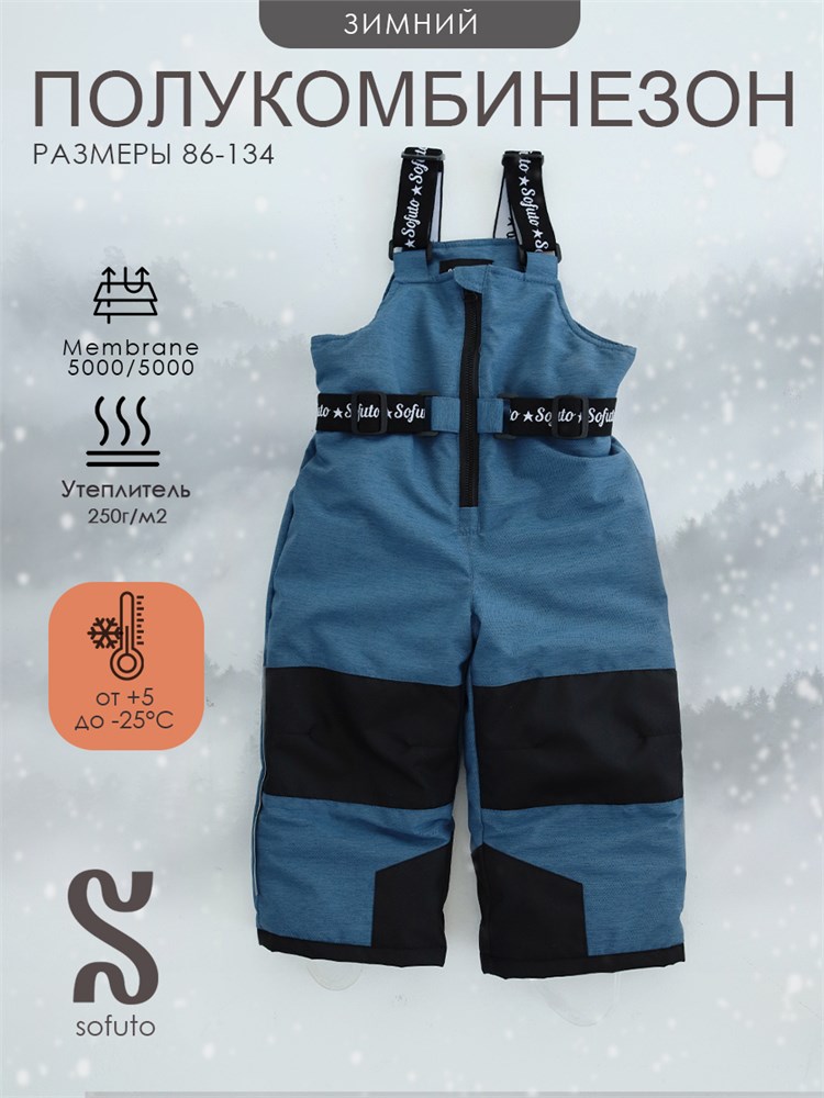 Полукомбинезон на лямках с регулировкой длины рекомендуем для дополнительного утепления на прогулках. Благодаря отворотам нижней части брюк и регулировке длины лямок изделие можно носить несколько сезонов.