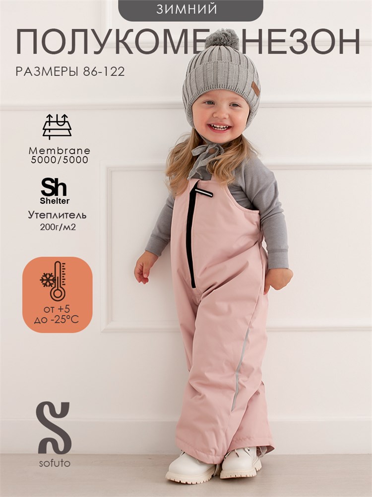 Рекомендуем дополнить полукомбинезон зимней курткой, шапкой-ушанкой и крагами в тон - получится целый готовый комплект одежды в одном стиле и температурным показателям!