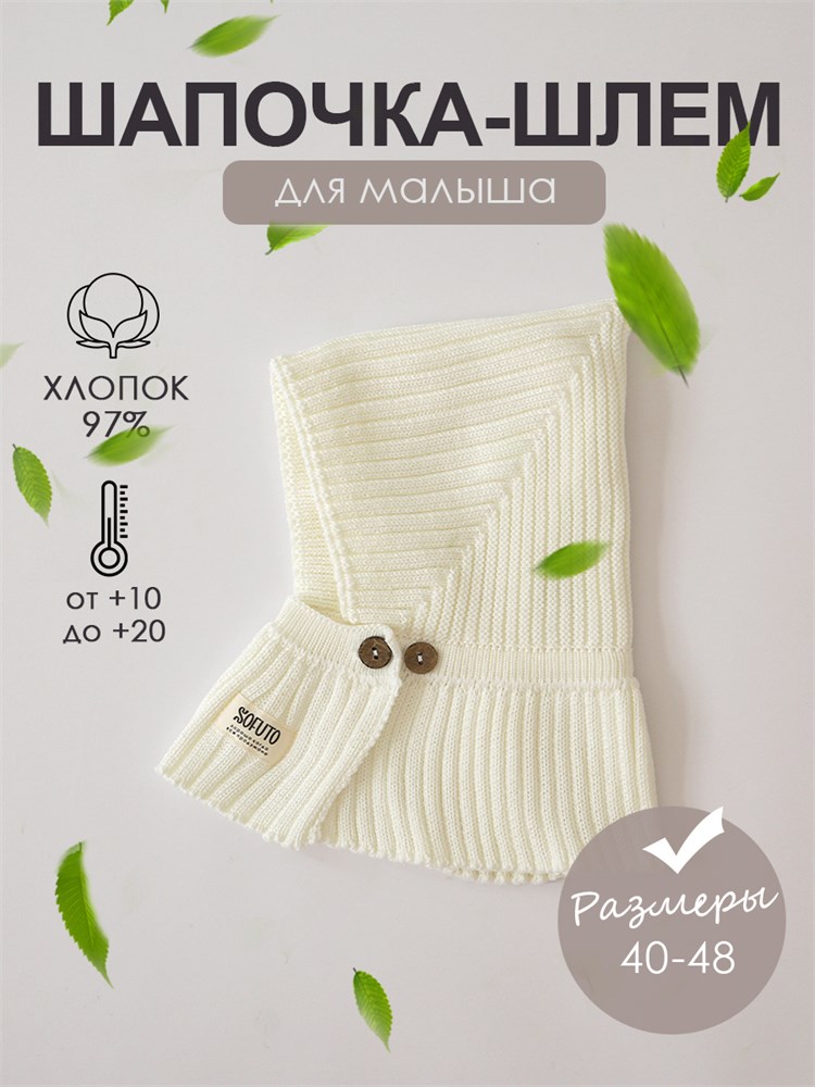 Милейшая трендовая шапка-шлем подойдёт крошкам с 3 месяцев - до 1,5 лет. Объём и плотность прилегания шапочки регулируется пуговичками, поэтому такая модель подойдёт крупным и хрупким малышам.